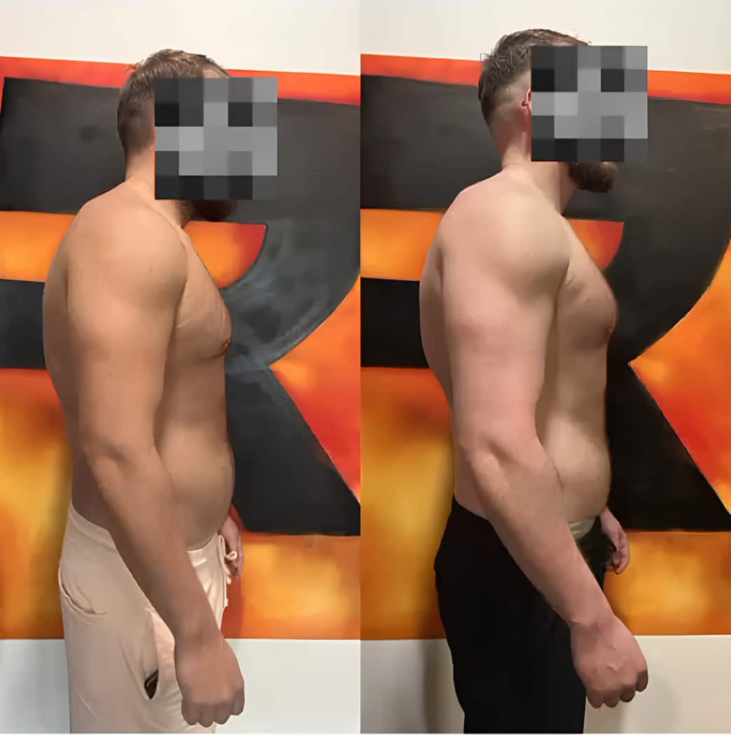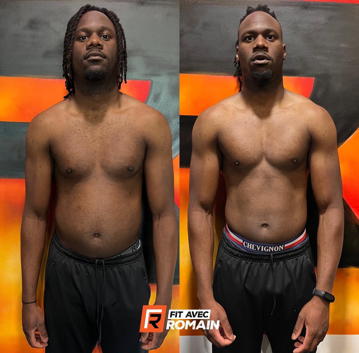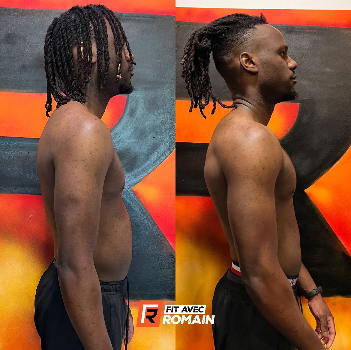 Des très beaux résultats sont visibles dont -13kg en 3 mois mais ce n’est pas fini je compte continuer avec Romain encore un moment.